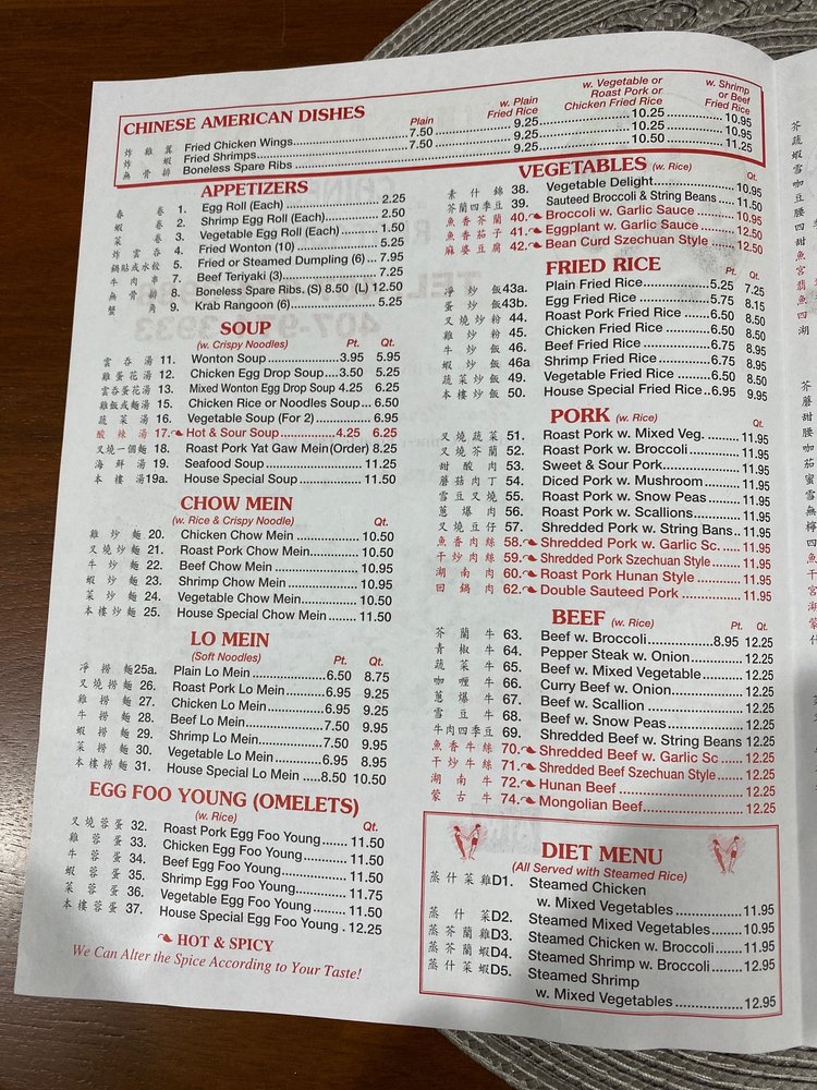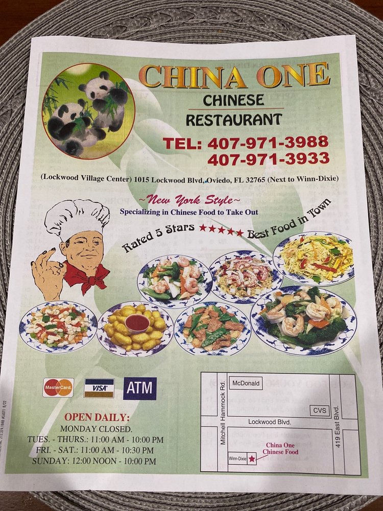 Introducing the menu at China One, a top Chinese restaurant in Oviedo, FL, offering a wide range of delicious dishes. Known for their House special Lo Mein, hot n sour soup, crispy fried wontons, and excellent pan-fried dumplings, China One has become a favorite among locals. Customers rave about the Sesame Chicken, Beef & Broccoli, Boneless Spare Ribs, Wonton Soup, Pork Fried Rice, and Lo Mein. The menu includes many vegetarian options and happy hour specials, making it a great choice for both meat lovers and vegetarians. The staff is friendly, and the service is quick and reliable, perfect for takeout or delivery. With a variety of options for every taste preference and dietary need, China One is a must-visit for anyone craving authentic and tasty Chinese cuisine.